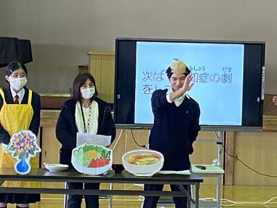 高校2年生は、昨年度認知症サポーターの認定を受けています。今回は、劇に役者としてまた、グループワークの進行役、まとめ役として参加し、小学生の認知症への理解の手助けをしました。