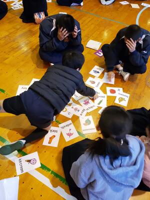 小学生は英語活動に慣れているようで、どのゲームでも高校生に負けないくらい、かるたを取っていました。