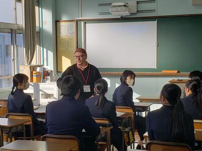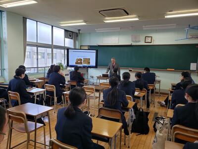 12月22日(金)2年特進クラス(2クラス)に対して、九州ルーテル学院大学の島内教授、アクストン准教授に来校していただき、出前授業をしていただきました。