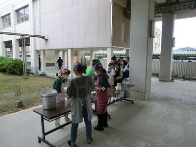11月1日(金)に予定していましたチャレンジウォークは延期になりましたが、育西会の方々による豚汁を提供していただきました。