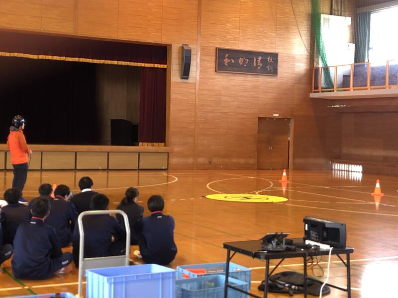 11月25日(月)の5・6限目、サイエンス情報科2年生を対象に行われました。生徒たちは体育館に集合し、(一社)九州ドローンスクールの方の御指導の下、4班に分かれてドローン操作を行いました。生徒たちは自分自身で操作できることに感激し、充実した時間を過ごしていたようでした。