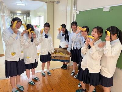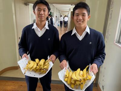 西峰会(同窓会)からは全校生徒、職員分のバナナをいただきました。