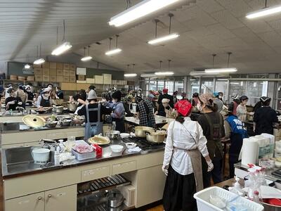育西会の役員の方々は、前日から食材の準備や鍋、ガスボンベの準備などをしていただきました。また当日の朝も7時から事前準備をしていただきました。