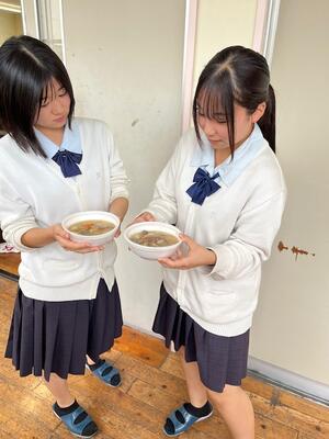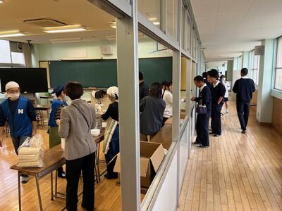 10月31日(金)のチャレンジウォークは延期になりましたが、9時から育西会のボランティアの方々(約50名)による豚汁づくりと生徒への提供がありました。