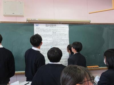 クラス内で、分野に分かれて班を作り、探究活動を進めてきました。