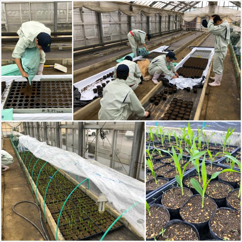 暖冬の影響もあって、ちょっと早いですがスイートコーンを定植しました。播種から約1か月が経ち、若干大きくなってしまいましたが、生徒たちが1本1本愛情を込めて定植してくれました。順調に生育してくれれば5月中旬には収穫できそうです。今年も美味しいスイートコーンが食べたいなぁ~(^-^)