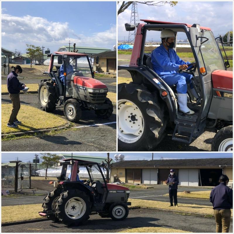 本日の1・2限目、「農業機械」の授業で農業科2年生がトラクターの実技試験に挑みました。本校の敷地内にあるトラクター演習コースで行われるこの試験は、右折・左折、一時停止はもちろん、クランクやS字カーブ、方向転換などもある自動車学校さながらの試験です。上手く運転できるのだろうか...と心配している職員をよそに、生徒たちは慣れた手つきと涼しい顔でトラクターを操っていました(^-^)生徒たちは日々の学習でしっかりと成長しているようです!