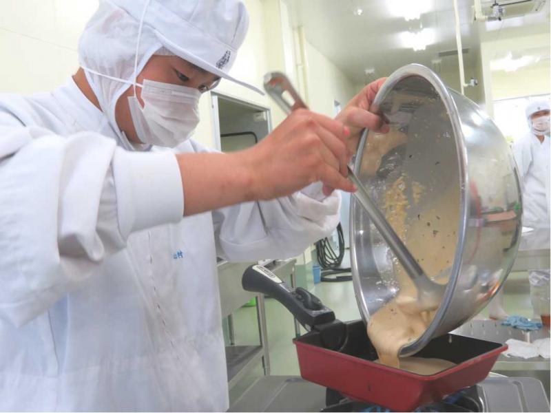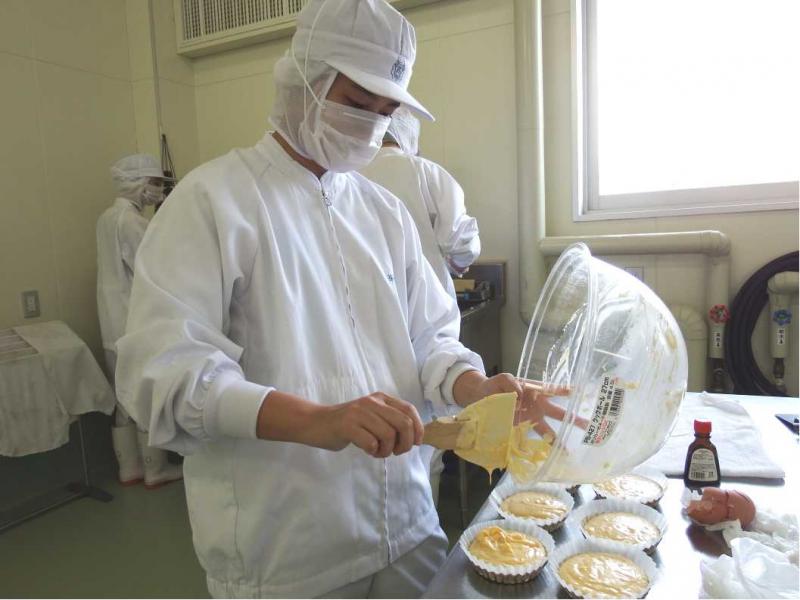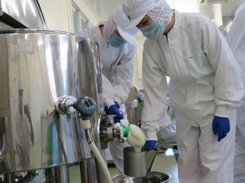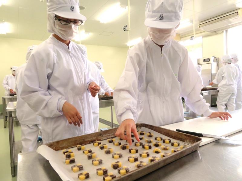 前回の実習でラッキスの製造原理を学んだ食品工業科3年生。今回の製造実習では、販売用の製品づくりに取り組みました。