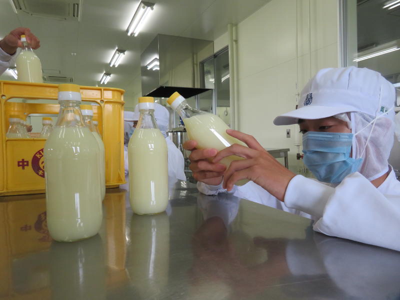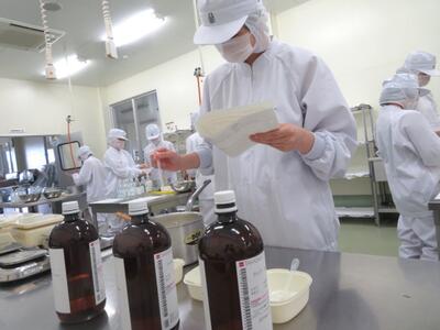 1年生で食品工業科に入学して最初の食品製造実習が行われました。