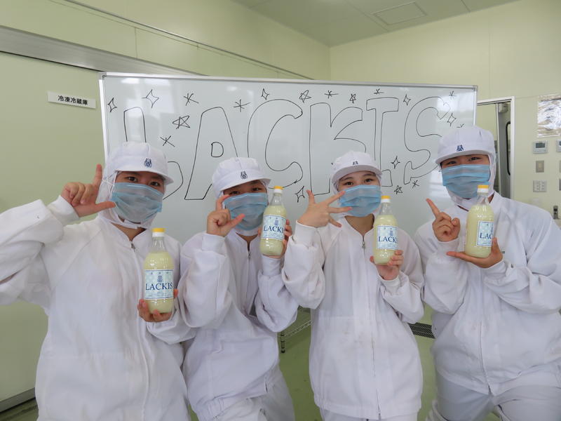 食品工業科3年生の食品製造の授業で、ラッキスの検品とラベル貼りを行いました。今回の実習を経て、ようやく製品として皆様にお届けする準備が整ったことになります。初物のラッキス、ぜひご賞味ください!