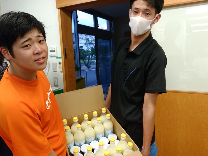 令和元年度の農業土木科卒業生が、実習製品購入のために食科棟を訪ねてきました。本人が大好きなだけでなく、職場でも大人気のようです。一人では抱えきれないくらいの数だったので、食品工業科の3年生が運ぶのを手伝ってくれました。