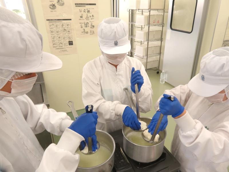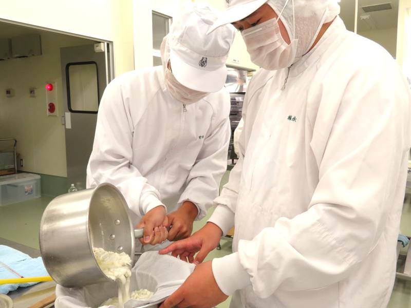 畜産物の加工について学んでいる、3年食品工業科の生徒たち。今回は「モッツァレラチーズ」の製造に挑戦です。