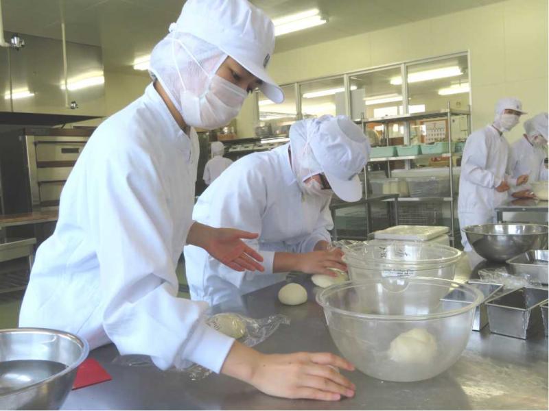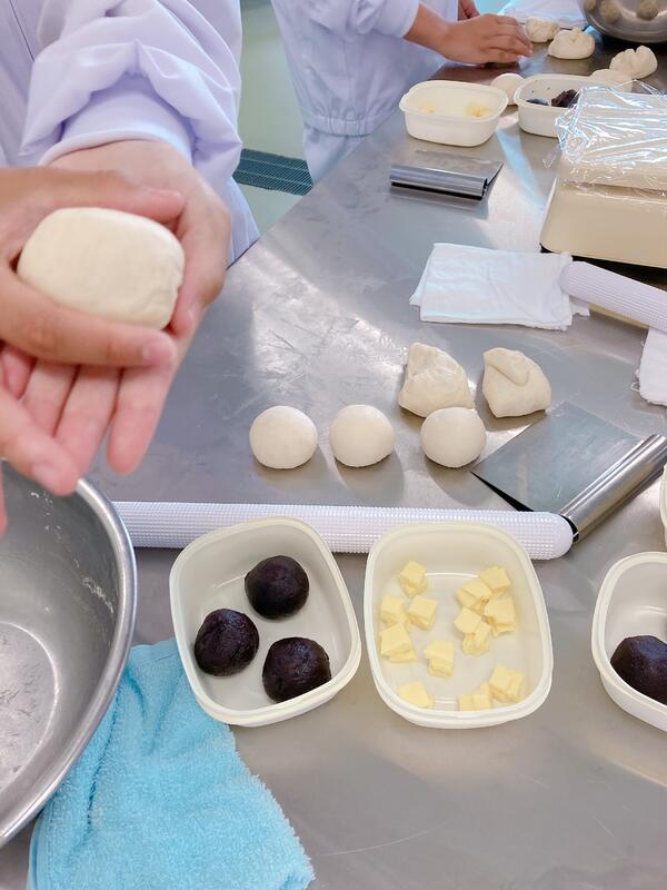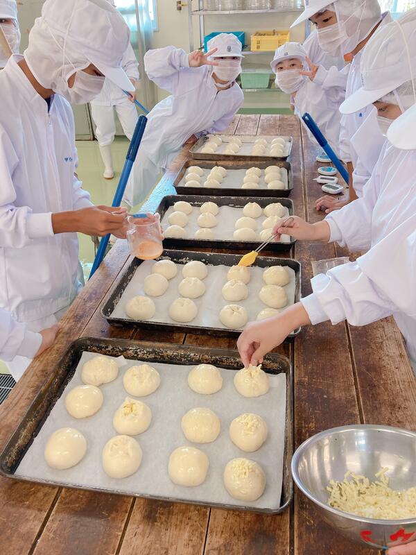 1年生の「食品製造」の時間外総合実習でメロンパンとチーズパン