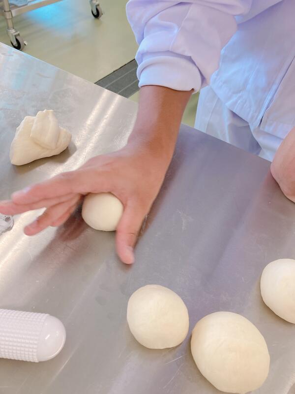発酵が終わった生地は分割をしたあと形を整えて、15分ほどベンチタイムをとります。