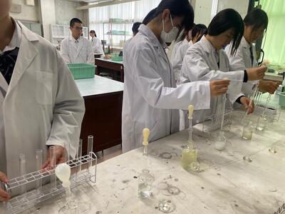 食品工業科では、食品製造だけでなく食品成分を分析する実験も数多く行っています。