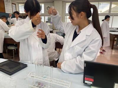 3年生の課題研究の授業では、各々が設定したテーマに基づいて研究計画を立て、調査・実験実習・振り返りを繰り返していきます。今日の授業でも、たくさんの生徒が真剣な表情で実習に取り組んでいました。今後、どのように研究が進展していくのか・・・楽しみにしています!