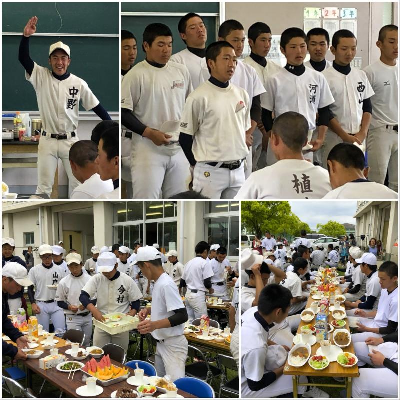 新学期が始まり1週間が経ちましたが、部員たちは授業に実習に部活にと慌ただしい日々を送っています。春の甲子園の選考会を兼ねた九州地区高等学校野球熊本大会を1週間後に控えた9日(日曜日)、保護者の方々のご厚意で壮行会が開催されました。朝早からたくさんの保護者の方々にお集まりいただき、カレーやおかず、デザートを準備していただきました。その想いを全身で受け取った部員たちは胸いっぱい&腹いっぱい(^^;)この感謝の気持ちを胸に、全力でプレーする部員たちに期待します!