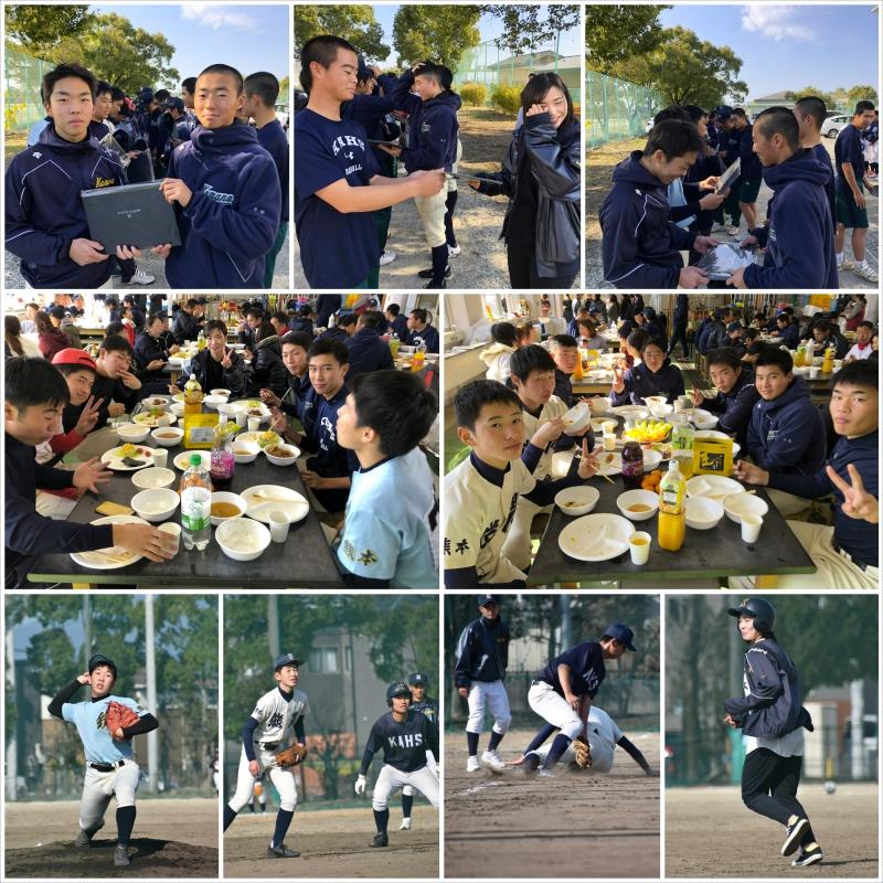 1月4日(土曜日)、硬式野球部の練習はじめでした!最初にグラウンドにお神酒を上げて、その後、河尻神宮へ移動し、必勝祈願をしました!最後には保護者さん手作りの美味しいだご汁もいただき、決意も新たに2020年の熊農硬式野球部がスタートしました!