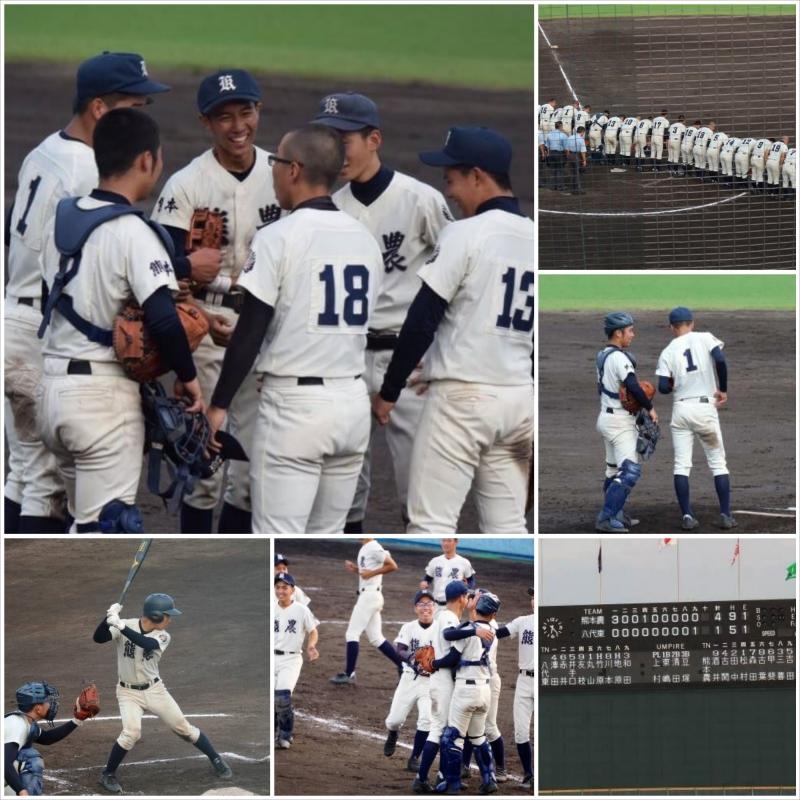 7月15日(月)、県営八代野球場で第101回全国高等学校野球選手権熊本大会2回戦が行われました。本校硬式野球部は、強豪八代東高校と対戦し、4-1で見事勝利しました!4点を先制したものの、その後、追加点が奪えず、逆に八代東に長打を許し、ピンチを迎えるということが何回かありましたが、その都度、エースの松村君を中心に、堅い守備で得点を許さないという展開が続きました。本当に最後のアウトが取れるまで手に汗握る白熱した試合でした!この結果、本校は、7月17日、藤崎台球場の第一試合で球磨工業高校と対戦することになりました!皆様、熊農硬式野球部への多大なるご声援をよろしくお願いいたします!