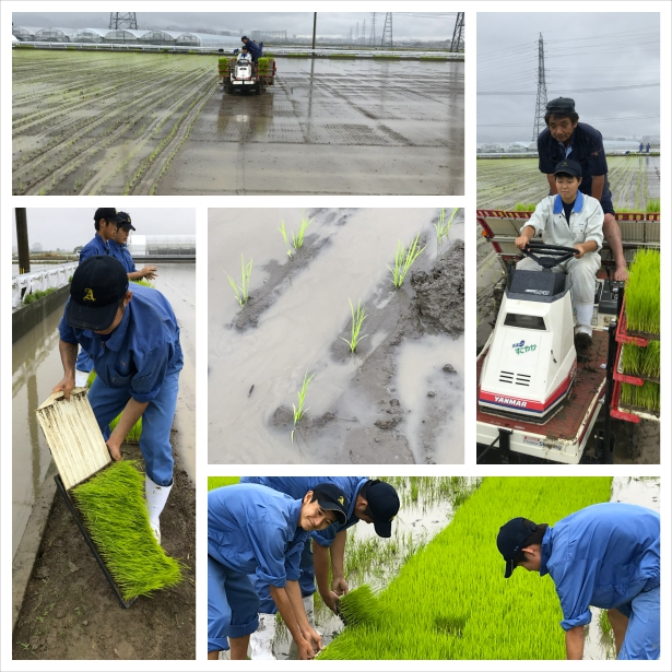 昨日より田植えが始まりました。農業科3年の作物専攻生が慣れない手つきで田植え機を操作をしていました。真っ直ぐに植えつけられた生徒も居れば、グニャグニャになってしまった生徒もちらほら...。乗車中は真剣な面持ちで取組み、降車後は苗の根切りをしながらほかの生徒の様子を見て談笑している姿がありました。農業を通じてとても良い勉強と経験ができているようです。
