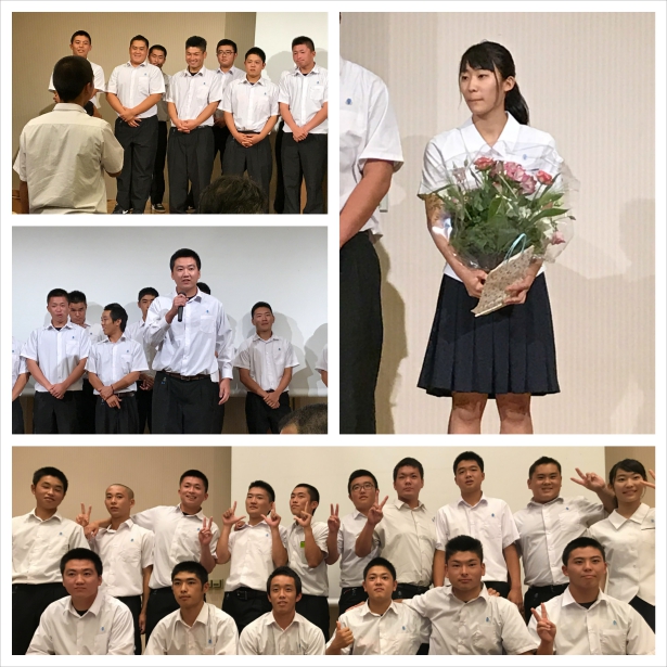 先日、野球部の壮行会がありました。まずは監督から選手へ激励の言葉がかけられ、その後、選手達からの決意表明がありました。主将の芥川君からはこれまで支えて下さった保護者の方々への深い感謝の気持ちとチームメイトへの想いが述べられ、3年生最後の選手権大会にかける熱い思いがひしひしと伝わってきました。2週間後に迫った本戦に向けて、チームの士気が日々高まっています!