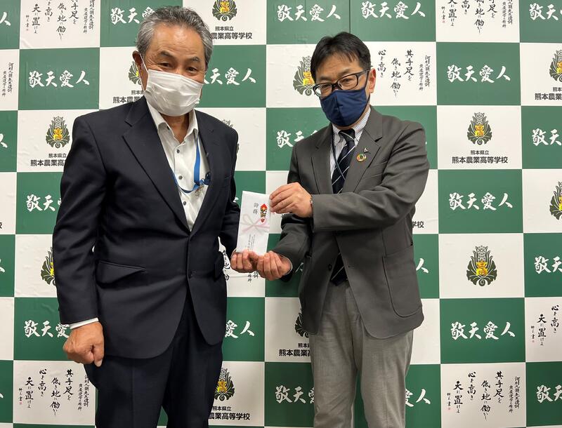 そこで本日、本校畜産科OBでもあられる熊乳協 坂本組合長様より、金一封をお贈りいただきました!!