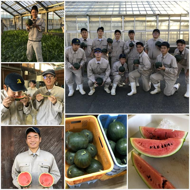 今週の農業科はまさに農繁期といった様子です!作物専攻生は実習で田植えを行っていました!また、野菜専攻に目を移すと、スイカの収穫が始まっていました!早朝から1個1個丁寧に収穫されたスイカは糖度が高く、とても美味しかったです!美味しい農産物をみなさんにお届けするために農業科の生徒・職員が一丸となって頑張っています!