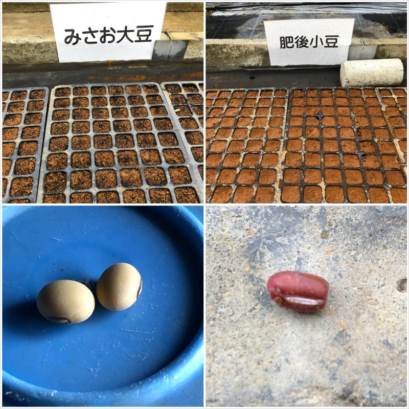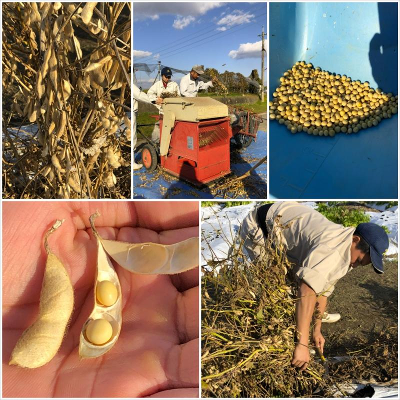 <左上:炒り豆の試食(品種:フクユタカ、佐大HO-1)>