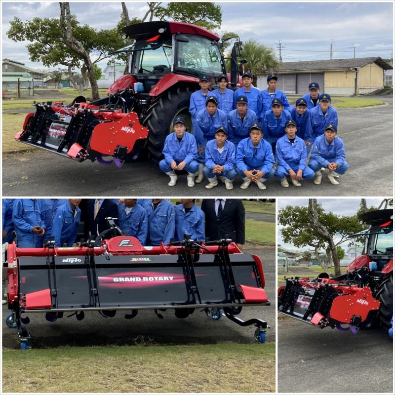 昨日、大型トラクター用の作業機が納入されました!グランドロータリーと呼ばれる今回の作業機は幅240cmで迫力満点!生徒たちも「デカっ!」「ゴツい!」と驚嘆していました(^_^)