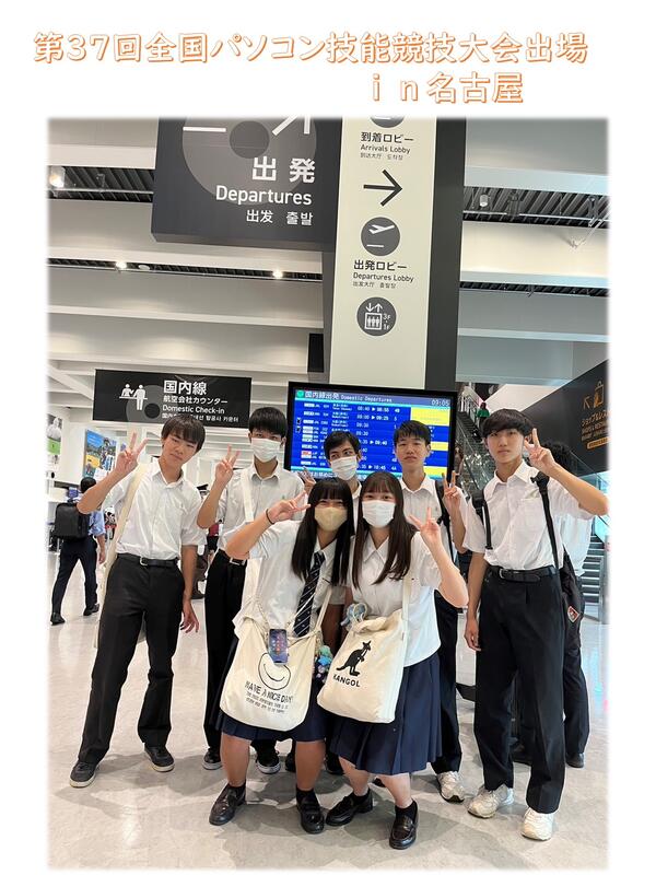第37回全国パソコン技能競技大会(主催:日本情報処理検定協会 後援:文部科学省)に出場するために名古屋に今日出発しました台風の影響で1日早く出発することになりましたが、夏休みずっと練習した成果を出し切って頑張ってきてください