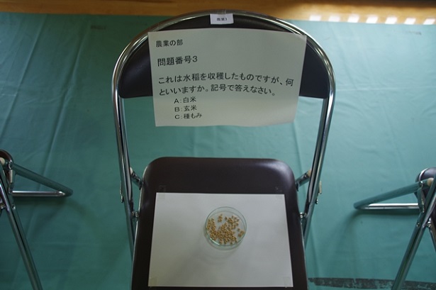 農業鑑定競技とは、下の写真のように種や植物などの実物が置かれており、それに対しての問題を答えていき、農業に関する知識を競う競技です。