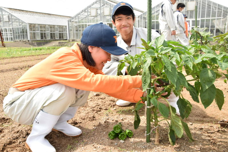 ピーマン・ナスの収穫(園芸・果樹科)