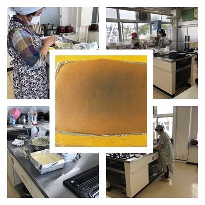 10名の参加者の皆様と、畜産科の卵を使用して、大きなカステラを一人1つずつ焼きました。(卵1パック分!)
