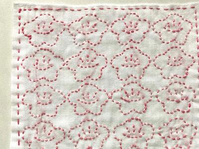 「刺し子」は、補強・保温を目的に、麻や木綿の布を重ね合わせて糸を縫ったもので、そのデザインを楽しみます。古典柄は使う人や家族への願いを込めて作るものです。