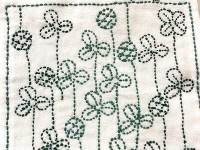 生活科1年生が、2月~3月の家庭学習期間で、刺し子のふきんを縫い上げました。