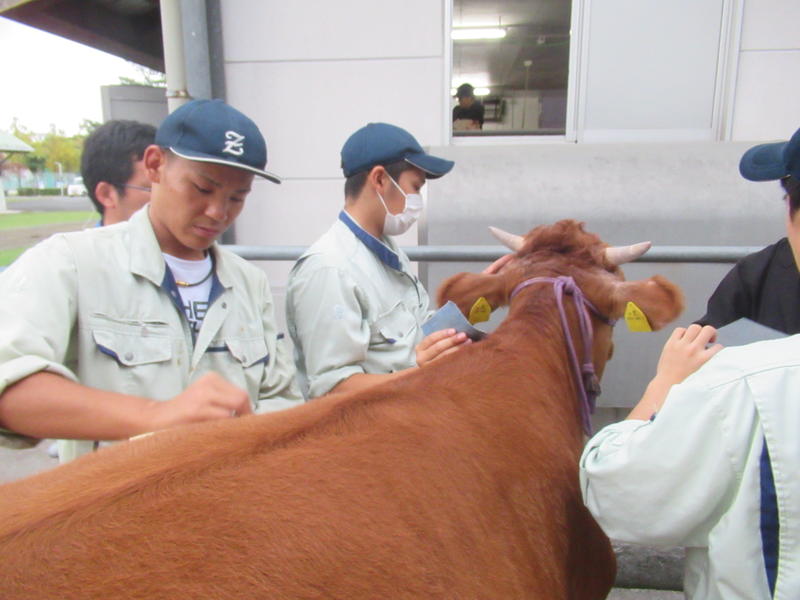 本校からは、黒毛和種の「みねこ」号を連れて参加し審査してもらったところ、82点を獲得することができました。これからも肉牛の改良に向けて頑張っていきたいと思います。
