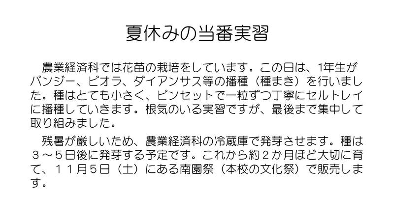夏休みの当番実習(農業経済科1年)