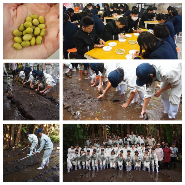 江津湖で水前寺もやし栽培(第1回)に取り組みました。
