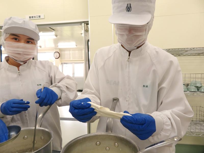畜産物の加工について学んでいる、3年食品工業科の生徒たち。今回は「モッツァレラチーズ」の製造に挑戦です。