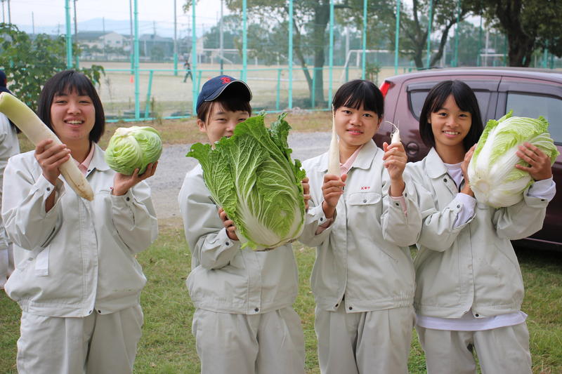 生物活用の授業で、畑を区分けして自分の畑を持ち、各自栽培したい野菜を育てました。すくすくと成長し、とても大きな白菜、ほうれん草、キャベツ、ひともじ、大根が本日収穫できました。保護者の皆さん、子どもさんが自分で育てた野菜をたくさん持って帰りますので期待しておいてください。また、11月10日の南園祭でも野菜・花の苗を販売しますので是非お越し下さい