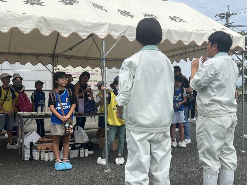 9月2日(土)、ウシとのふれあいや乳加工体験をとおして、畜産や酪農への興味関心を高めていただく「あぐりキッズスクール」が開催され、小学生とその保護者の方が畜産科エリアに訪問されました。
