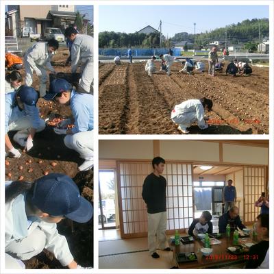 定植の後は公民館へと場所を移し、お昼ご飯を御馳走になりました。定植からお昼ご飯の時間を通し、多くの方々とたくさん交流ができたと思います。