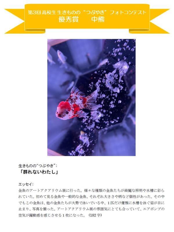 生物科学学会連合「第3回 高校生 生きものの “つぶやき” フォトコンテスト」275作品の応募の中から本校3作品が優秀賞に選ばれました。授業の一環として生きものの写真撮影を行いました。おめでとう