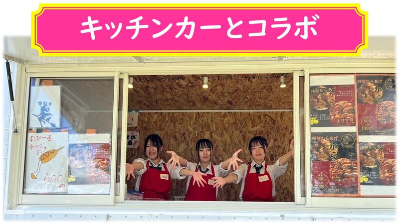 課題研究という授業で、キッチンカーとコラボして商品開発を行っています。商品開発、チラシ、キッチンカーデザインなど生徒たちで考え販売しますお楽しみに
