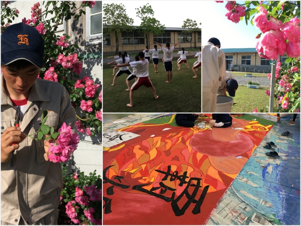 生徒会役員が体育大会の準備中。技巧走の道具出しやテスト、国旗掲揚の確認なども行っていました。