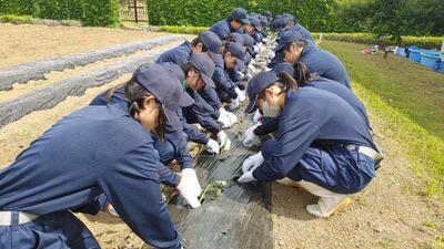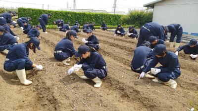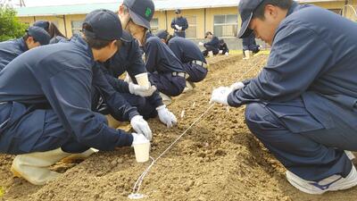 食品工業科1年「農業と環境」の授業で、サツマイモの定植とポップコーンの播種を行いました今年度栽培する品種は、サツマイモは「安納芋」と「シルクスイート」、ポップコーンは「まるポップ」です