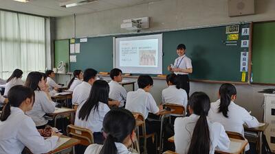 講話では、自身が高校生だったときのこと、教師を志すようになったきっかけ、大学の授業や学生生活についてなど、様々なエピソードを笑顔で分かりやすく話してくださり、生徒は熱心に耳を傾けていました!貴重なお話をありがとうございました