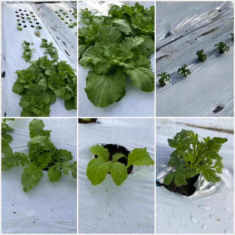 開放講座の白菜、大根、カブは生育に差はありますが、概ね順調に成長しています!しかし、害虫のヨトウムシによる食害があちらこちらで見られます...。今後は害虫との戦いになりそうです!また、農場の奥に足をのばすとじゃがいもが発芽していました!ホクホクの美味しい秋じゃがが楽しみです!