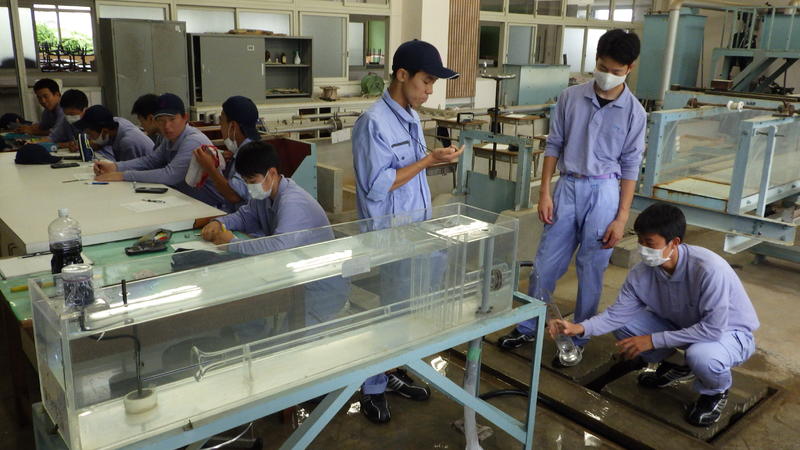 2年生の総合実習ではクラスを3つに分けて土木に関する実験を行っています。今日の実験では、○水理「層流と乱流」、○土質「液性限界試験」、○材料「セメント密度試験」を実施しました!教室での座学や、外で行う実習と同様、物質の特性や性質を、実験を通じて学ぶことはとても大切です。普段当たり前にあるものも、こうした実験や試験を繰り返し、改良を重ねた上に社会が成り立ったいることを、今日の実験を通して感じ取ってくれたような気がしました。