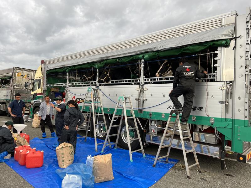 4月12日(火)トラックに牛を積み込み静岡県に向け出発しました。